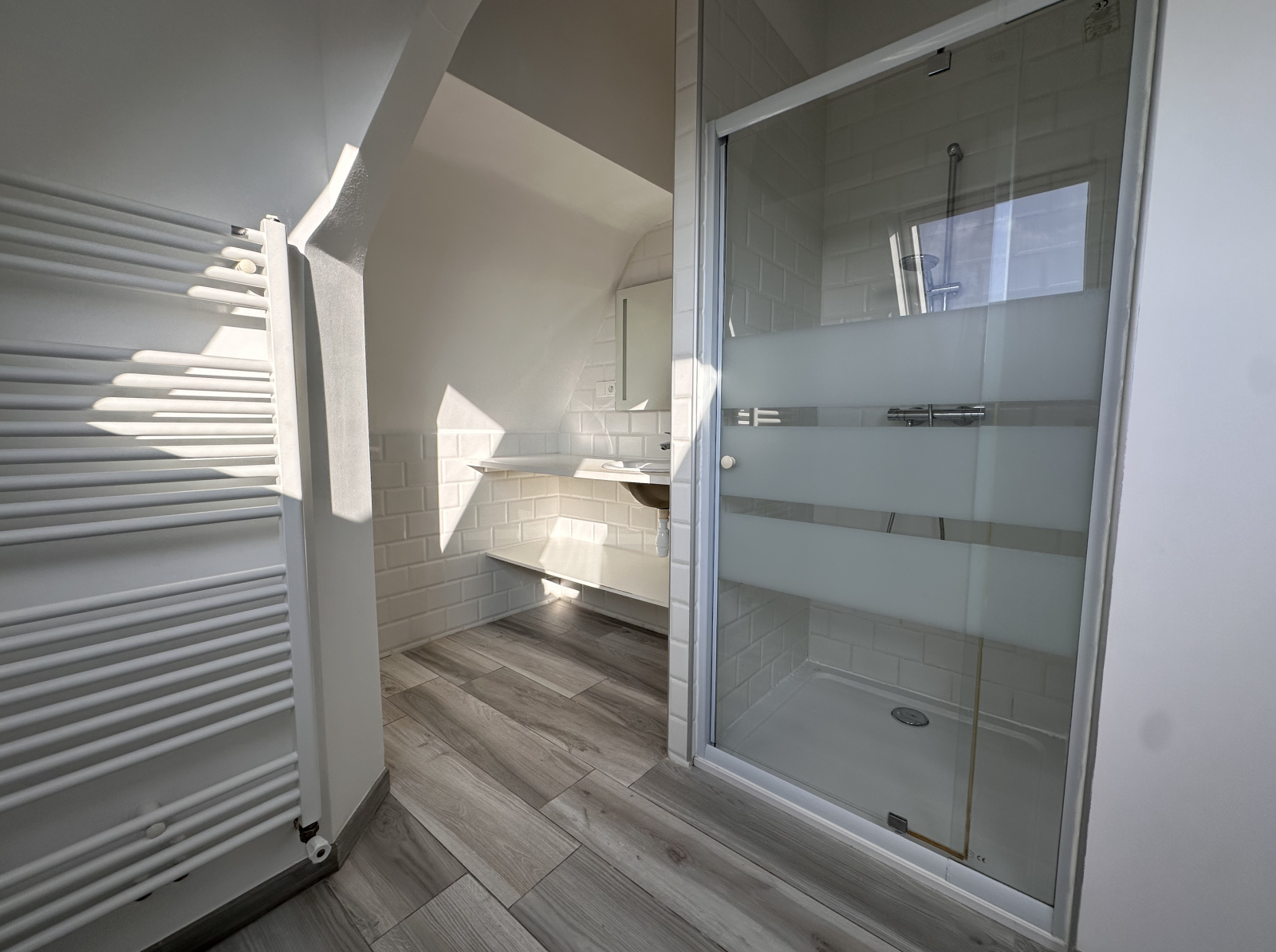 -Au 2eme étage, un appartement de 50m2 libre,comprenant: une entrée, une cuisine ouverte sur séjour/séjour, deux chambres, une salle d'eau, un WC (chauffage individuel gaz)