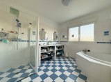 On retrouve également au rez-de-chaussée une chambre, une salle de bains avec douche, un WC indépendant ainsi qu’un cellier pouvant être aménagé en bureau selon les besoins.