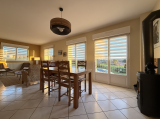 La maison offre une entrée, une cuisine équipée ouverte sur un salon-séjour lumineux avec accès balcon.